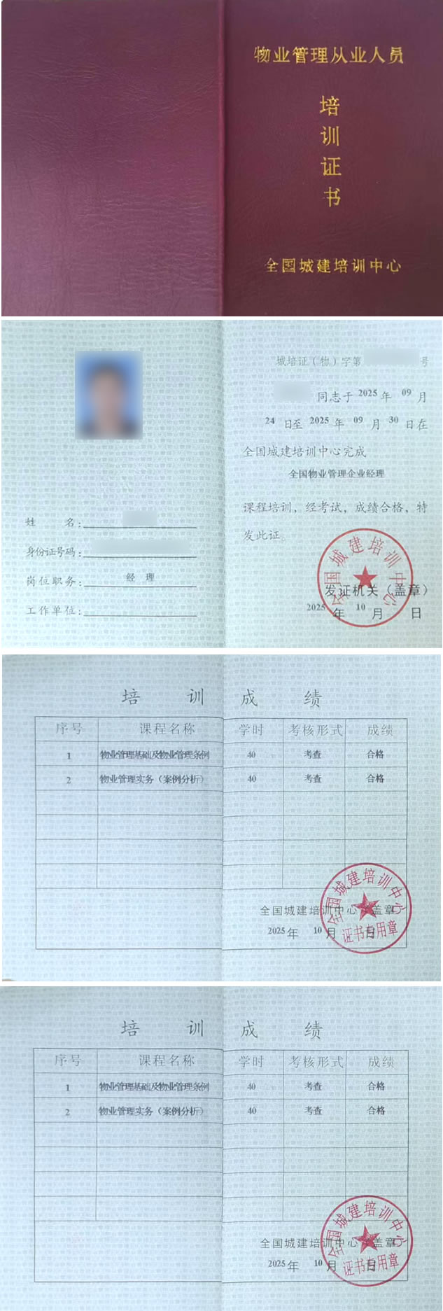 三、证书:考试合格后由建设部颁发全国通用的《全国物业管理企业经理岗位证书》