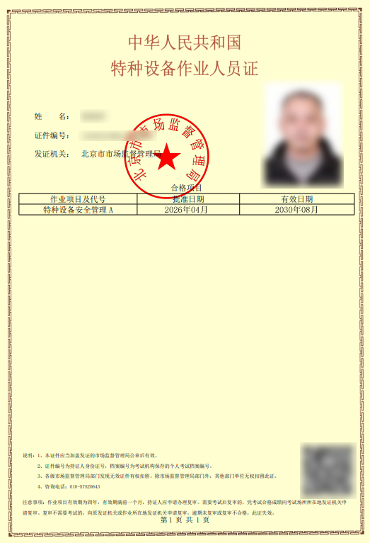 所需资料: 取证报名资料: 1. 近期2寸正面免冠白底彩色照片1张及同底电子版照片 2. 身份证复印件1份(要求A4纸,正反两面身份证复印件) 3. 高中或高中以上学历复件份1份 4. 特种设备作业人员资格申请表(非京籍需提供北京居住证或3个月内北京市社保权益记录)下载:申请表 复审报名资料: 1. 近期2寸正面免冠白底彩色照片1张及同底电子版照片 2. 身份证复印件1份(要求A4纸,正反两面身份证复印件) 3. 网上证书查询截图 4. (复审)特种设备作业人员资格复审申请表 点击下载:复审申请表