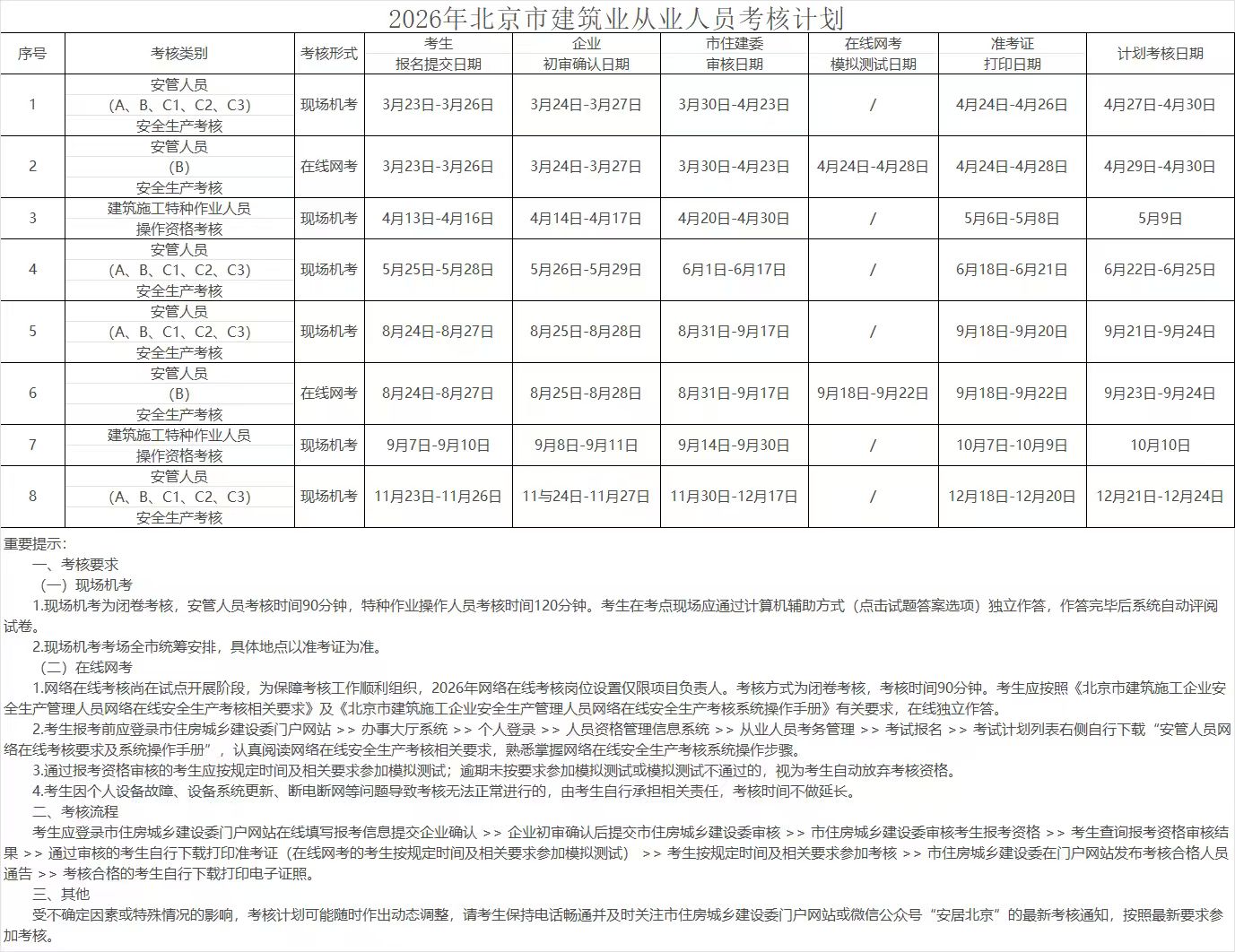 2026年北京市建筑业从业人员考核计划